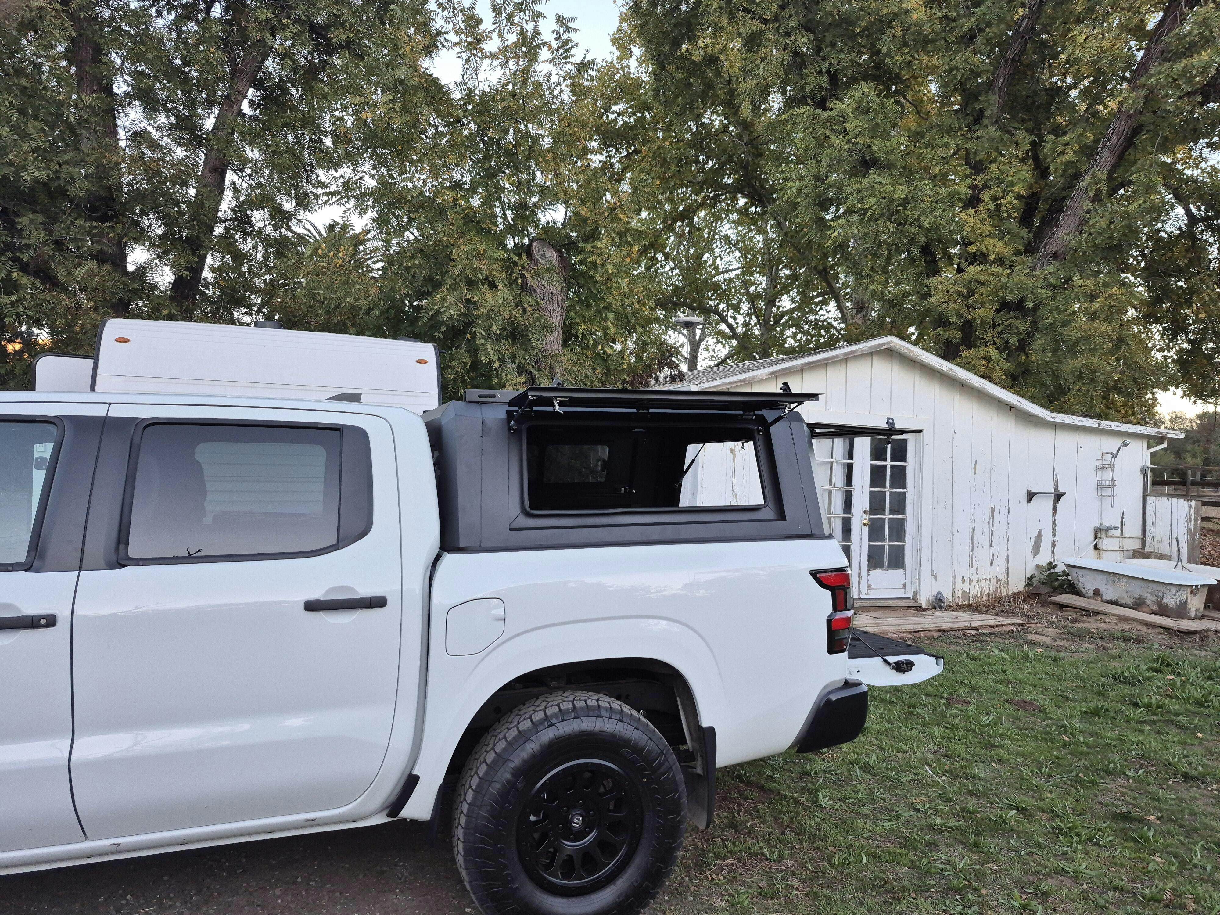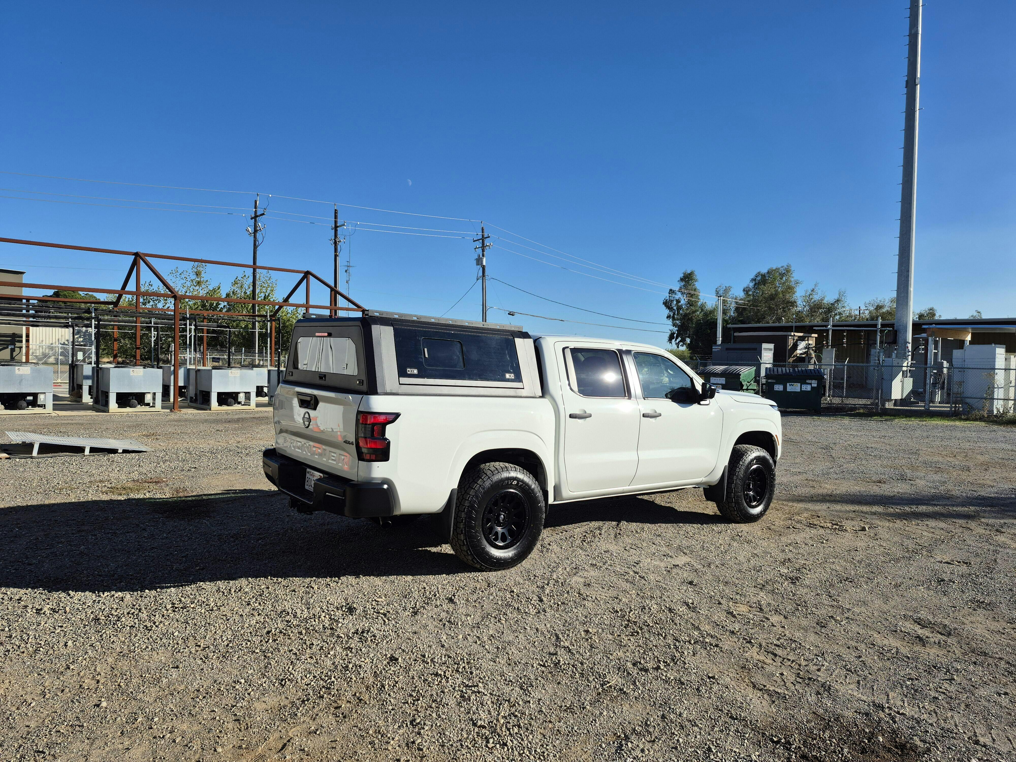 The Pioneer Truck Cap is engineered with concealed door hinge technology, resulting in a sleek and minimalist aesthetic. The gap at the back door hinge is approximately 0.28 inches., while the side door hinge gap is approximately 0.2 inches. This design not only enhances visual appeal but also demonstrates superior craftsmanship compared to other concealed hinge systems.