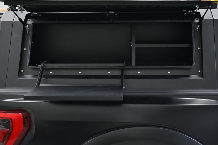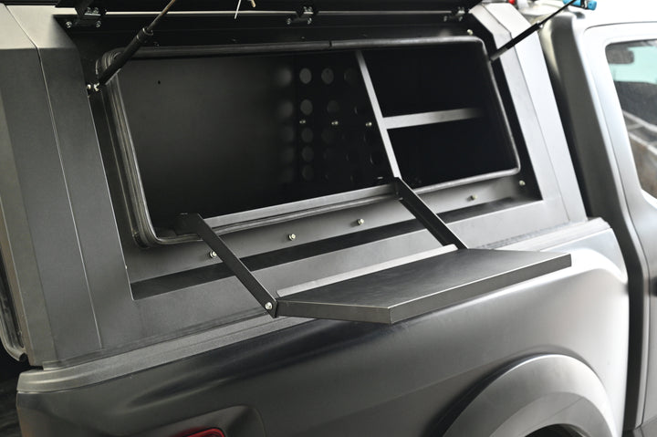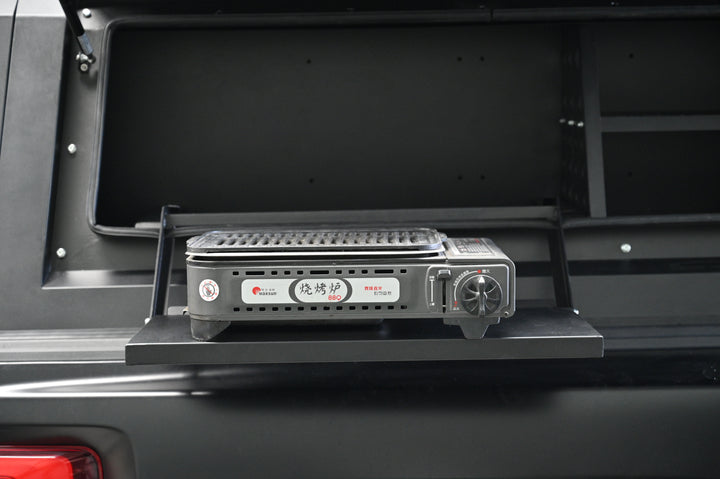 This camping kitchen offers two material options: stainless steel and aluminum alloy. It can be used in conjunction with either the Sport Truck Cap or the Adventure Truck Cap. It features plug-and-play functionality, allowing you to enjoy a cooking experience outdoors with ease.